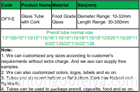 18*120 mm di preroll di vetro con sughero